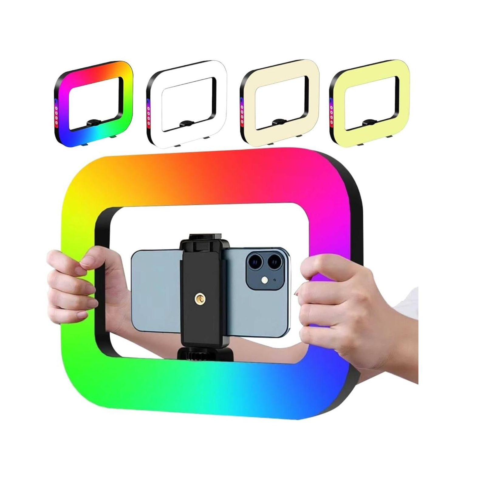 Aro / Marco LED de iluminación que permite colocar un teléfono dentro de su cavidad central para iluminar desde los bordes.